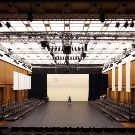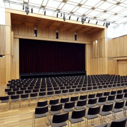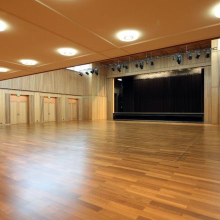 Die moderne Technik ist geschickt in das repräsentative Ambiente des Saals integriert. Eine große Bühne mit Nebenbühne sowie die anhebbare Vorbühne, die als Orchestergraben genutzt werden kann, erfüllen selbst die Anforderungen für aufwändigere Inszenierungen.